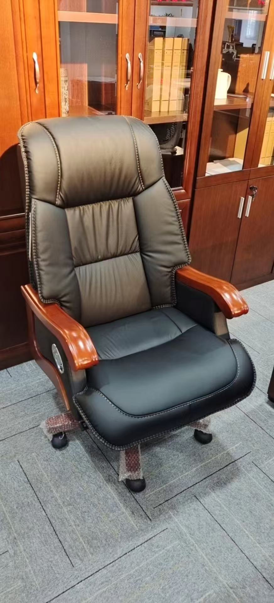 牛皮老板椅,高靠背、升降、前后調節